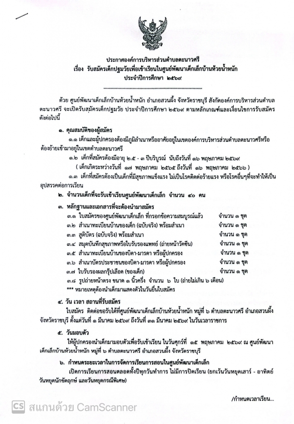 เรื่อง : รับสมัครเด็กประถมวัยเพื่อเข้าเรียนในศูนย์พัฒนาเด็กเล็กบ้านห้วยน้ำหนัก ปีการศึกษา 2569