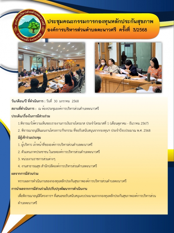 ประชุมคณะกรรมการกองทุนหลักประกันสุขภาพ อบต.ตะนาวศรี ครั้งที่ 3/2568